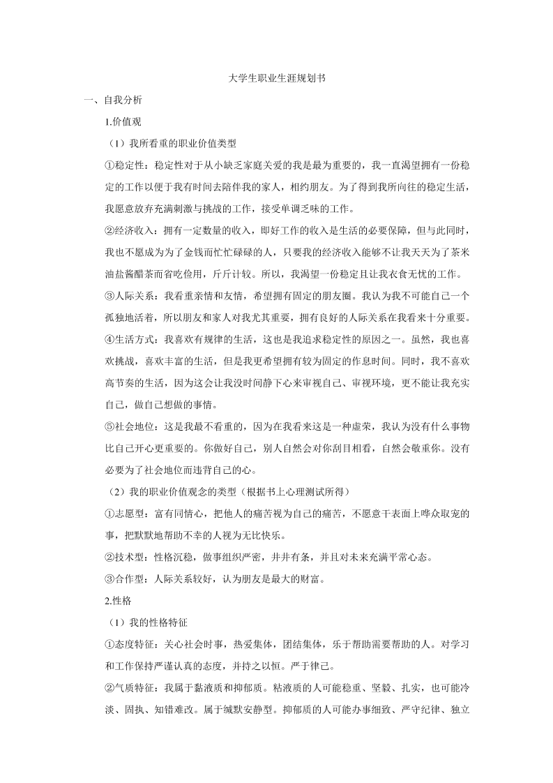 • 生涯规划书模板