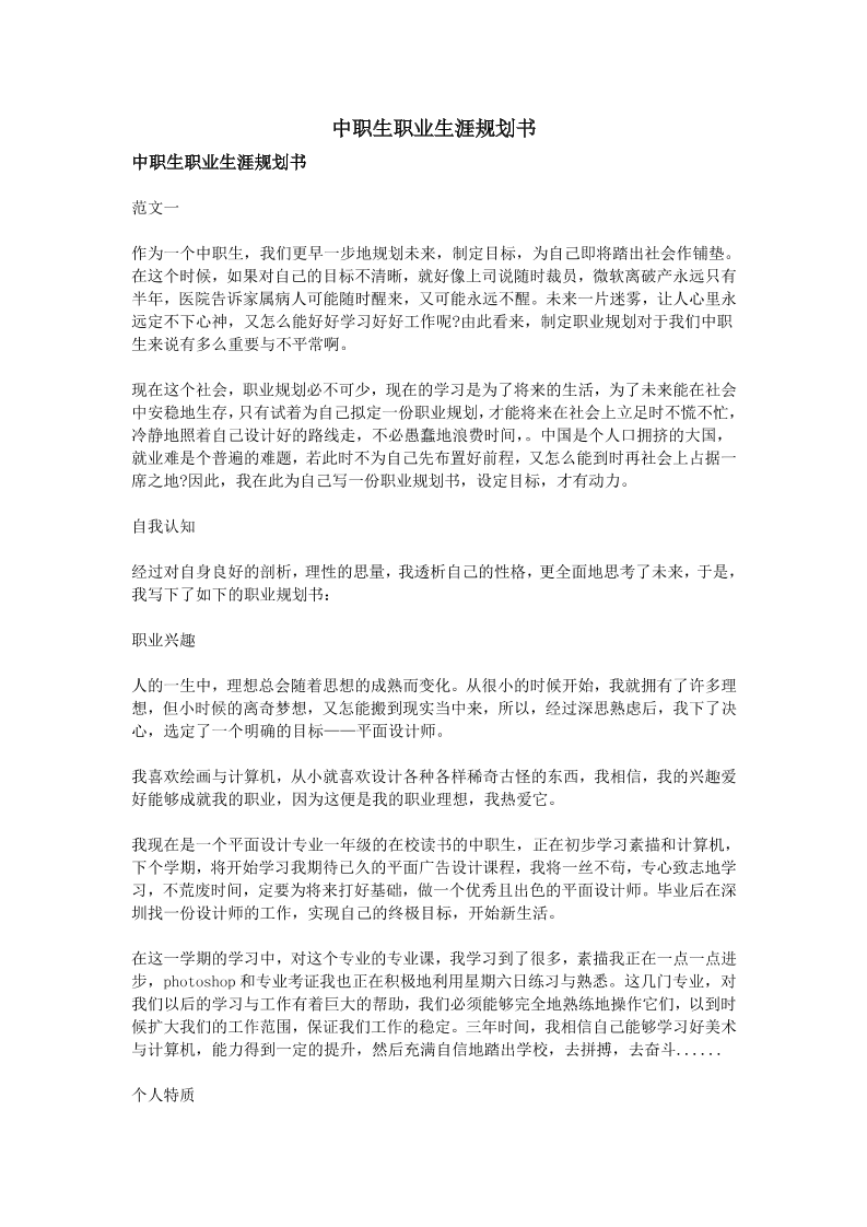职业生涯规划范文-职业生涯规划