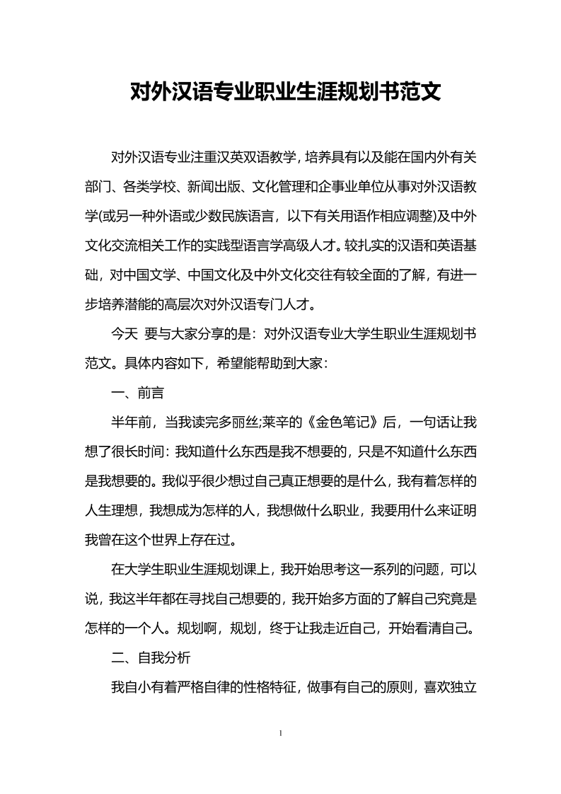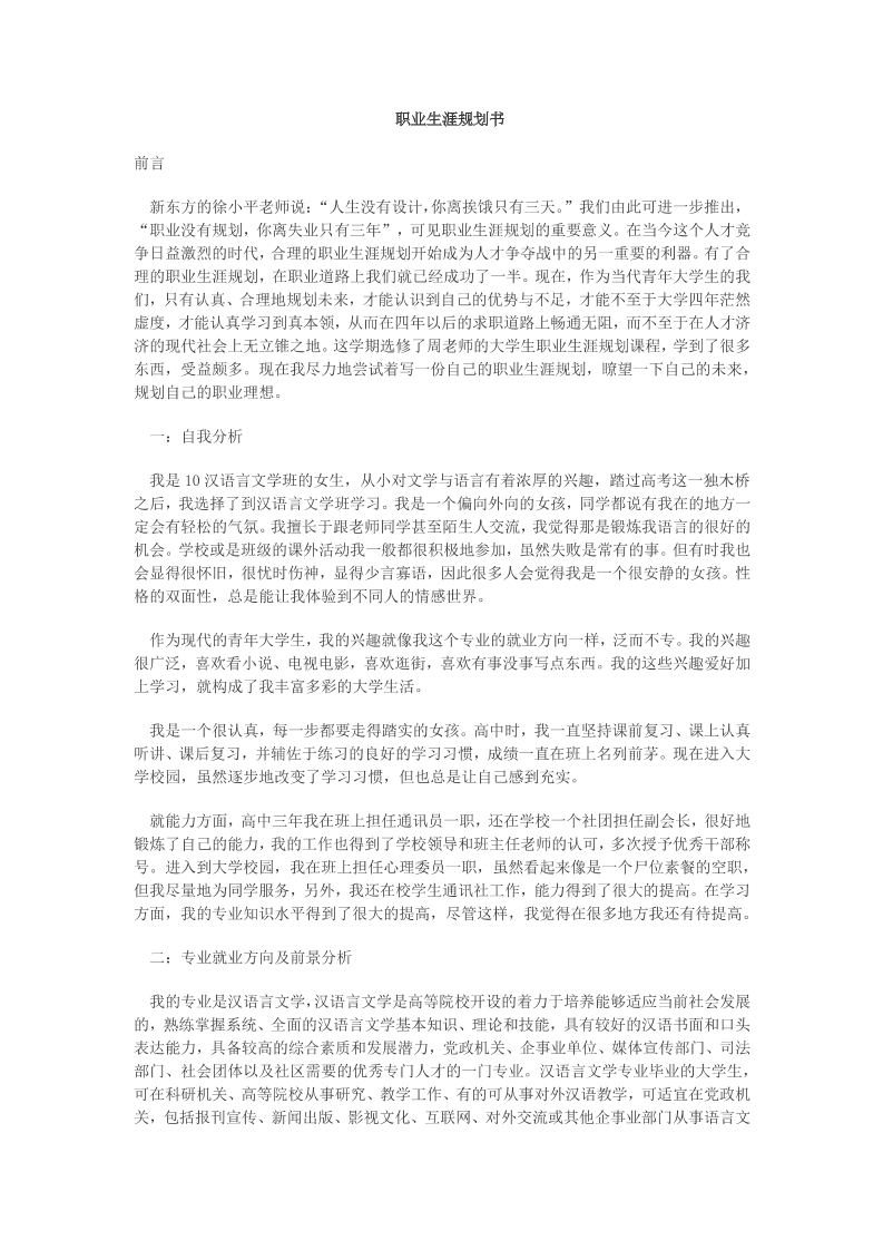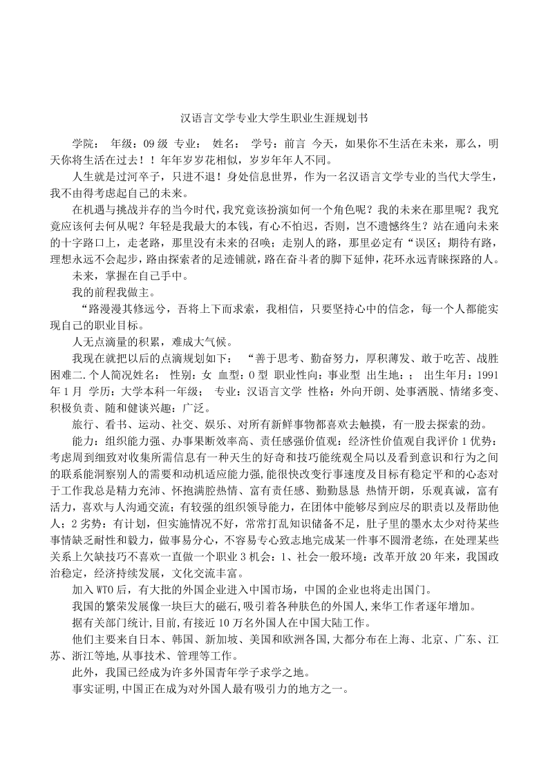 汉语言文学专业职业生涯规划书 (1)