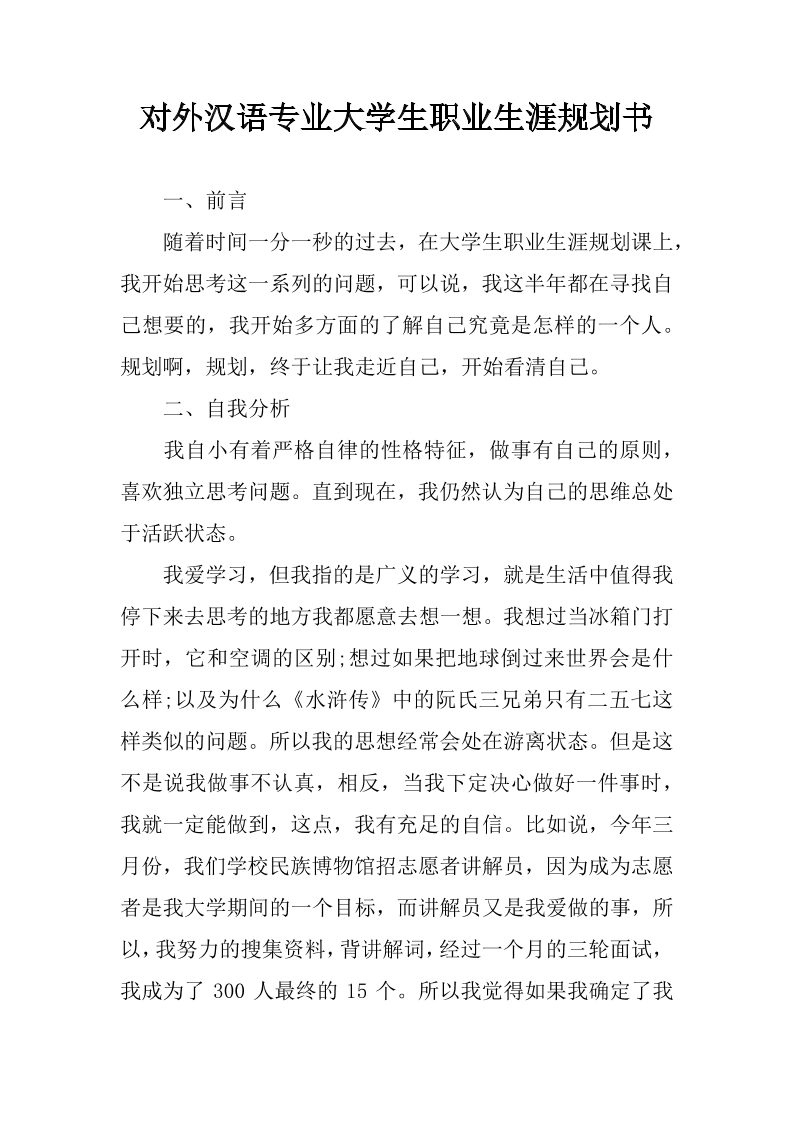 对外汉语专业大学生职业生涯规划书
