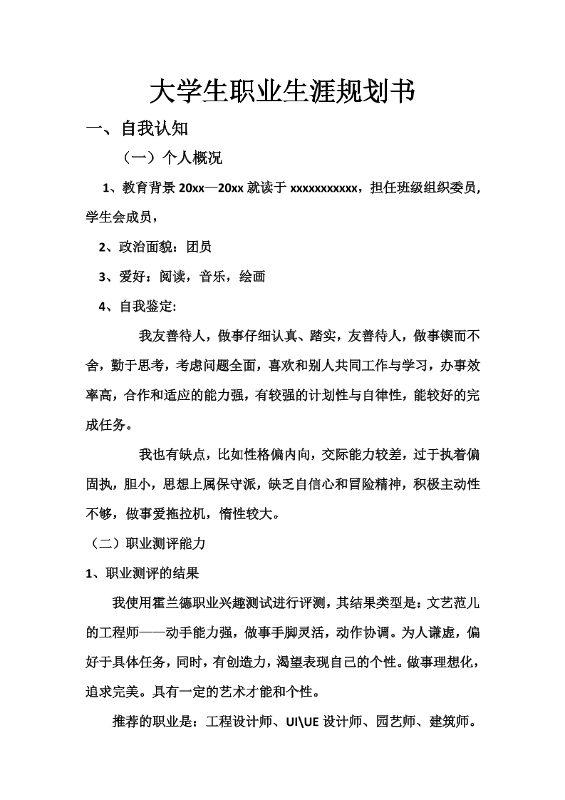 生涯规划书模板