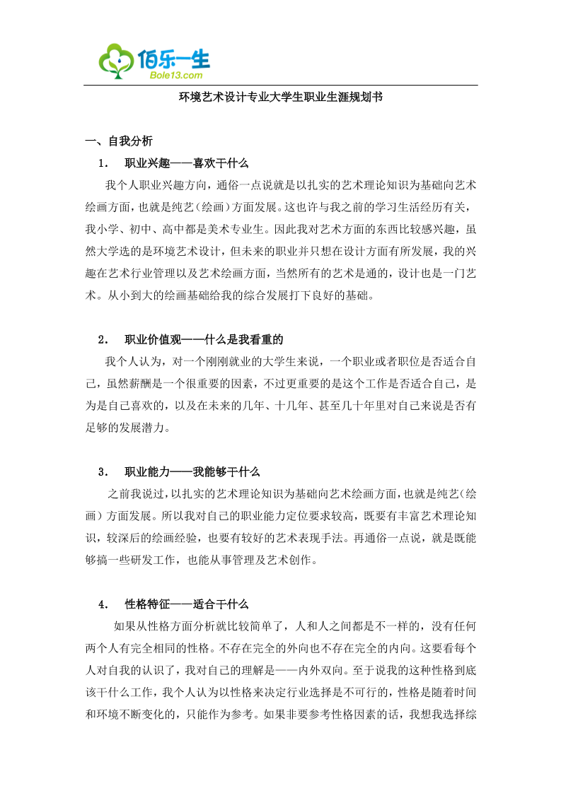 环境艺术设计专业大学生职业生涯规划书