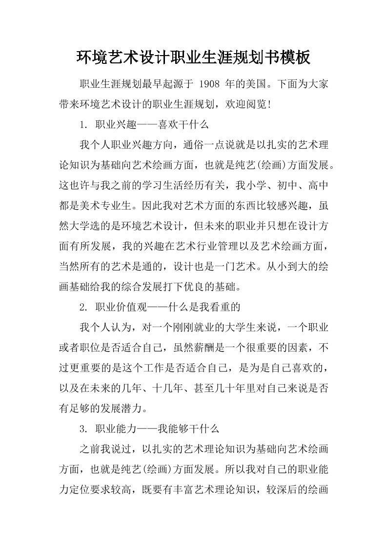 环境艺术设计职业生涯规划书模板