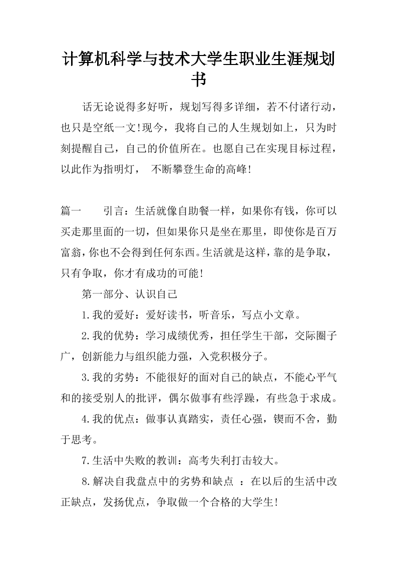 计算机科学与技术大学生职业生涯规划书