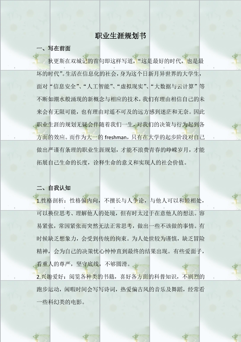 • 生涯规划书模板