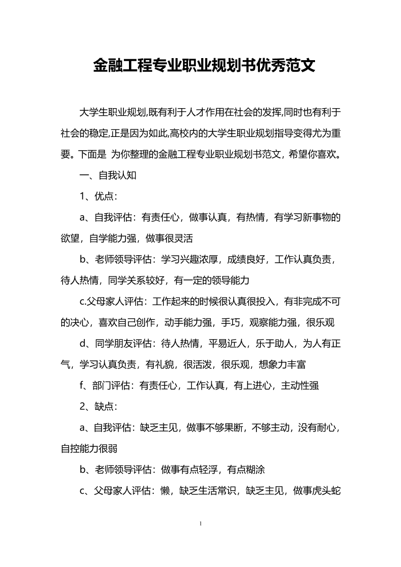 1、金融工程专业职业规划书优秀范文