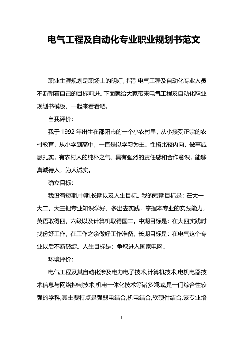 3、电气自动化大学生职业生涯规划书