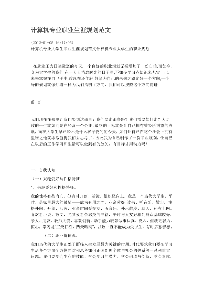 计算机专业职业生涯规划范文