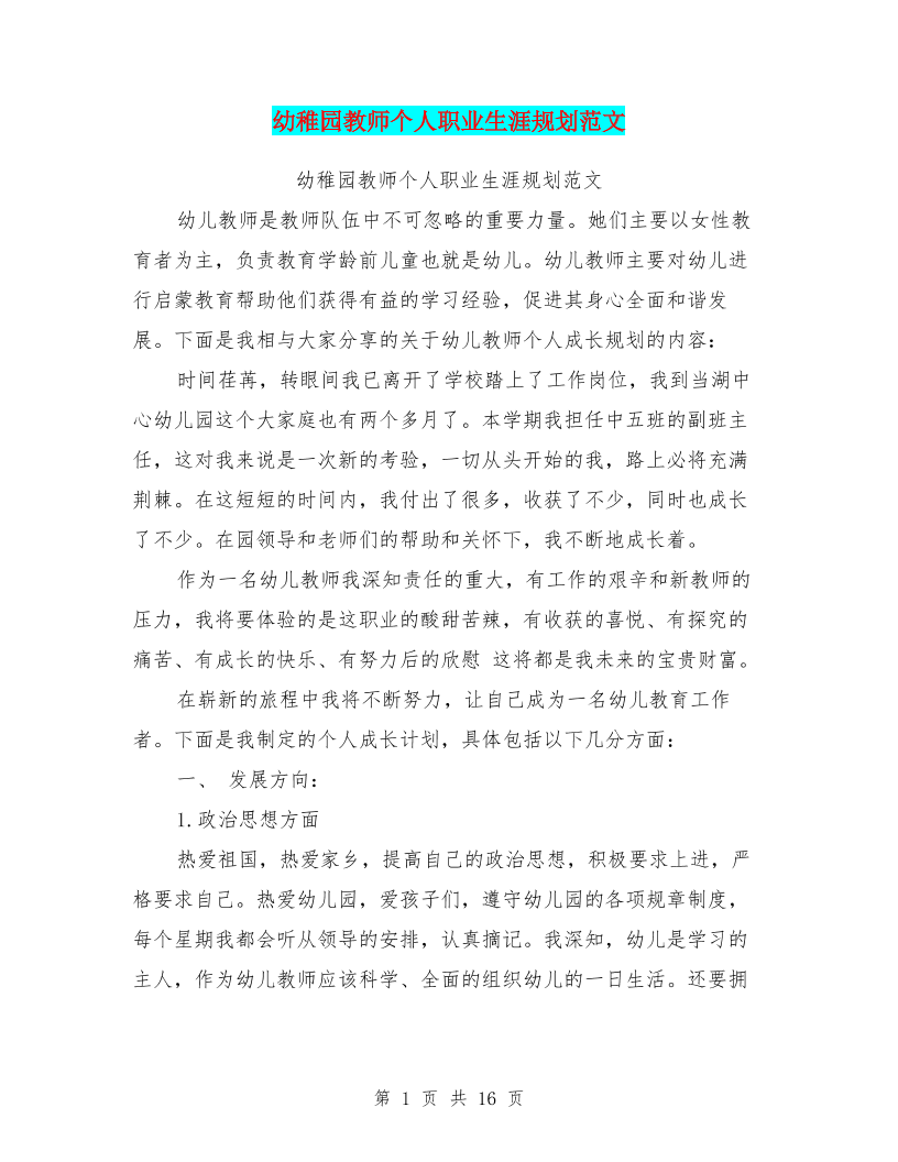 1、学前教育专业个人职业生涯规划范文(最新篇)