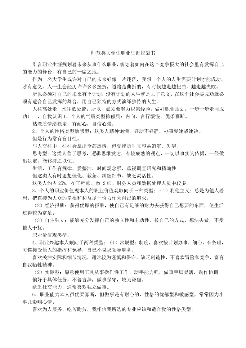 师范类大学生职业生涯规划书