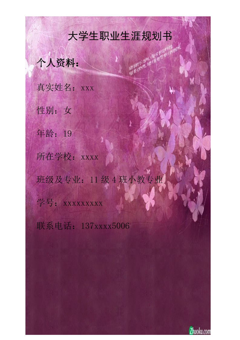 5、大 学 生 职 业 生 涯 规 划 书 教 师 职 业