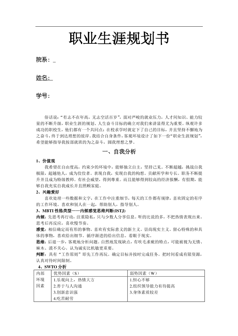 5、大 学 生 职 业 生 涯 规 划 书 教 师 职 业