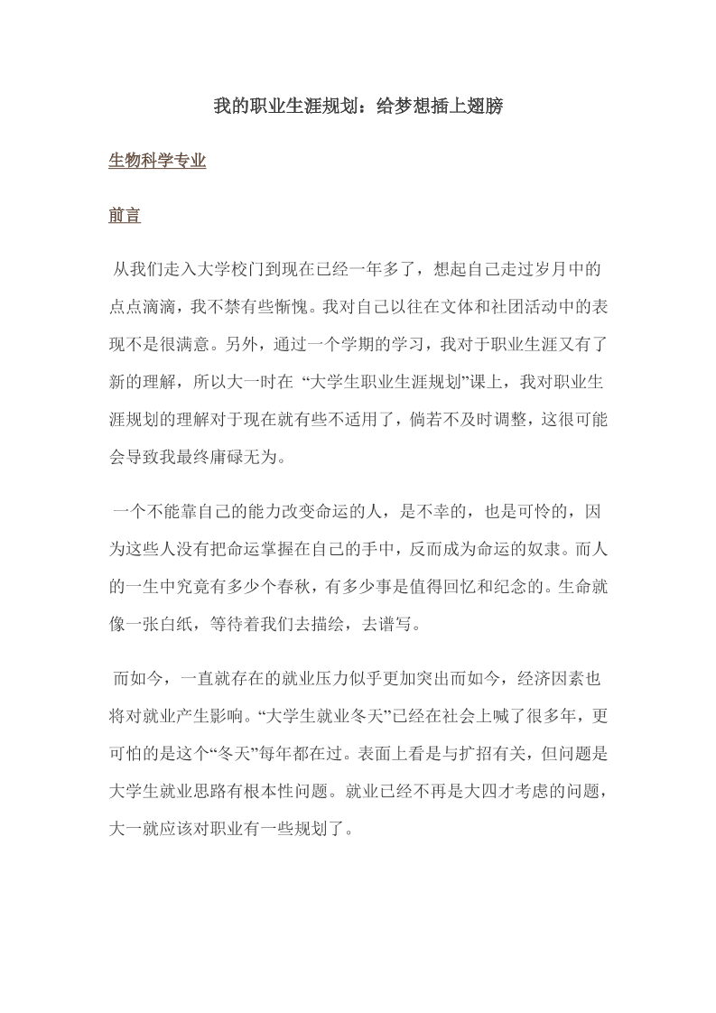 10、生物科学专业——我的职业生涯规划:给梦想插上翅膀