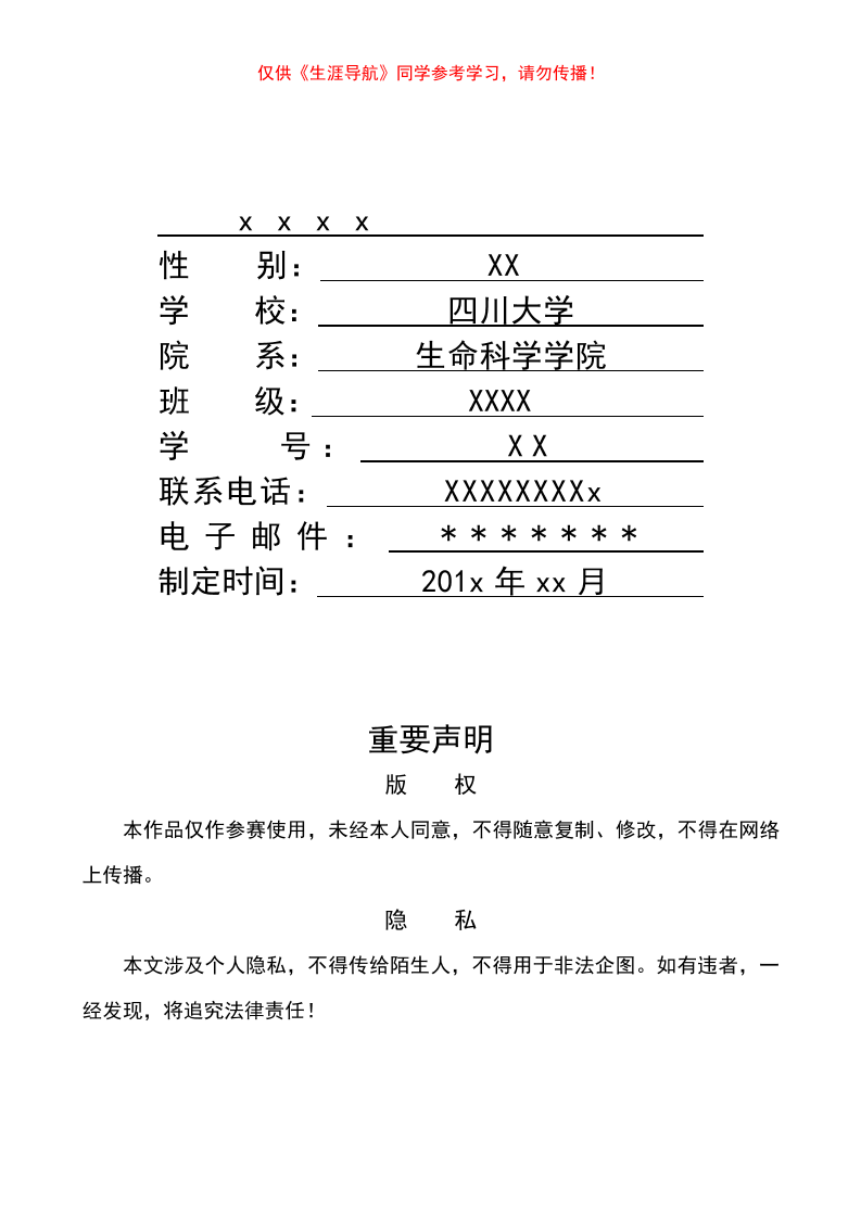 生涯规划书模板