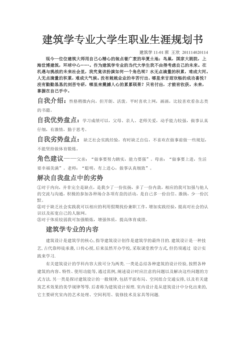1、大学生职业生涯规划书范文(工程造价专业、建筑学专业)