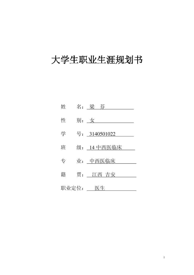1、医学生职业生涯规划书