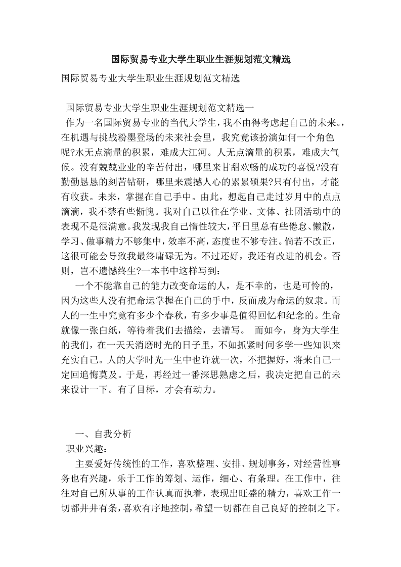 1、国贸专业职业生涯规划书