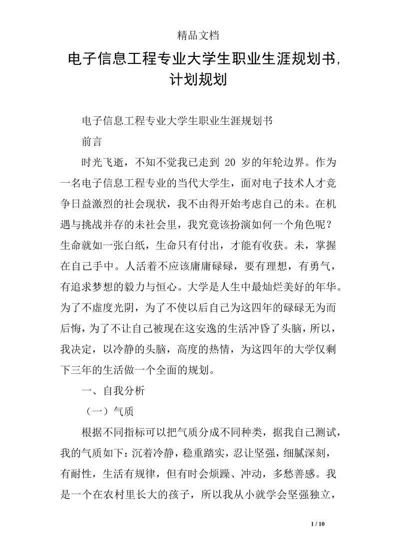 1、大学生职业生涯规划书范文(电子信息工程技术专业)2