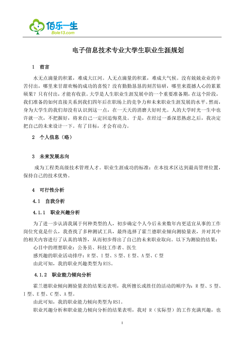 1、大学生职业生涯规划书范文(电子信息工程技术专业)2