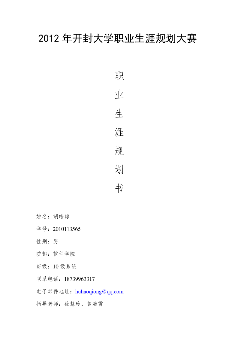 2、职业生涯规划书