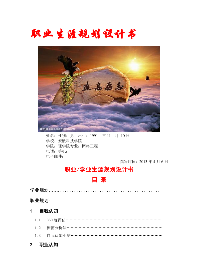 职业规划理学院网络工程专业职业生涯规划设计书模板WORD