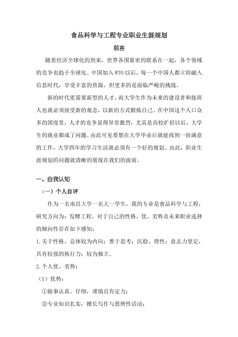 9、模版参考-食品某同学职业生涯规划书(不能照抄内容-可参考版式)