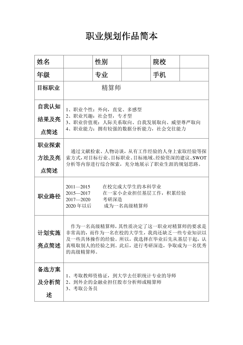 查看生涯规划书模板