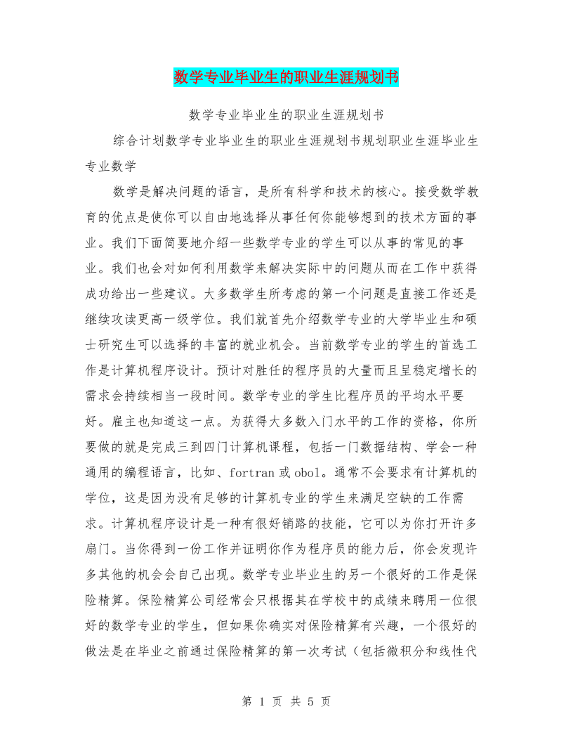 6、2019年整理--大学生职业生涯规划书(数学专业)-0