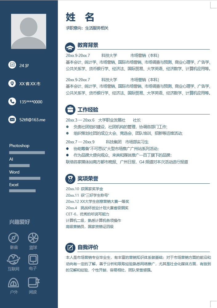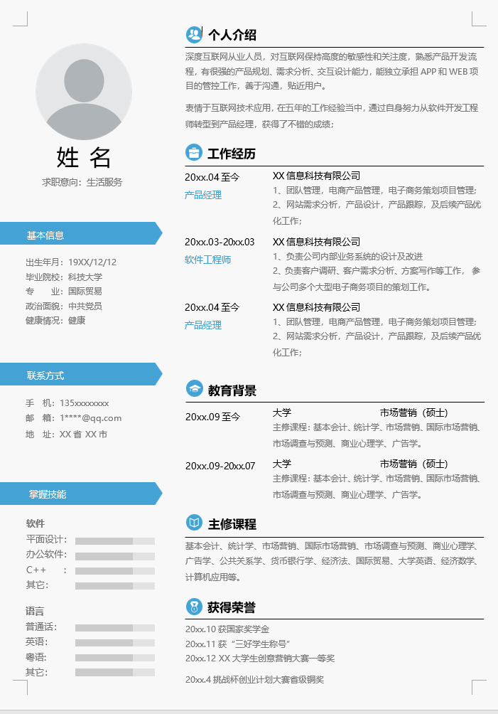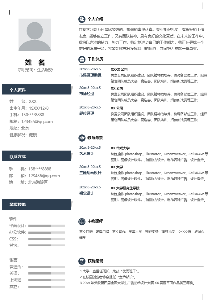 生活服务简历模板-1