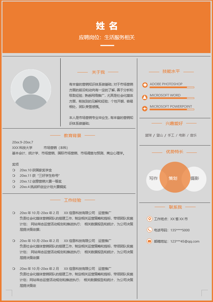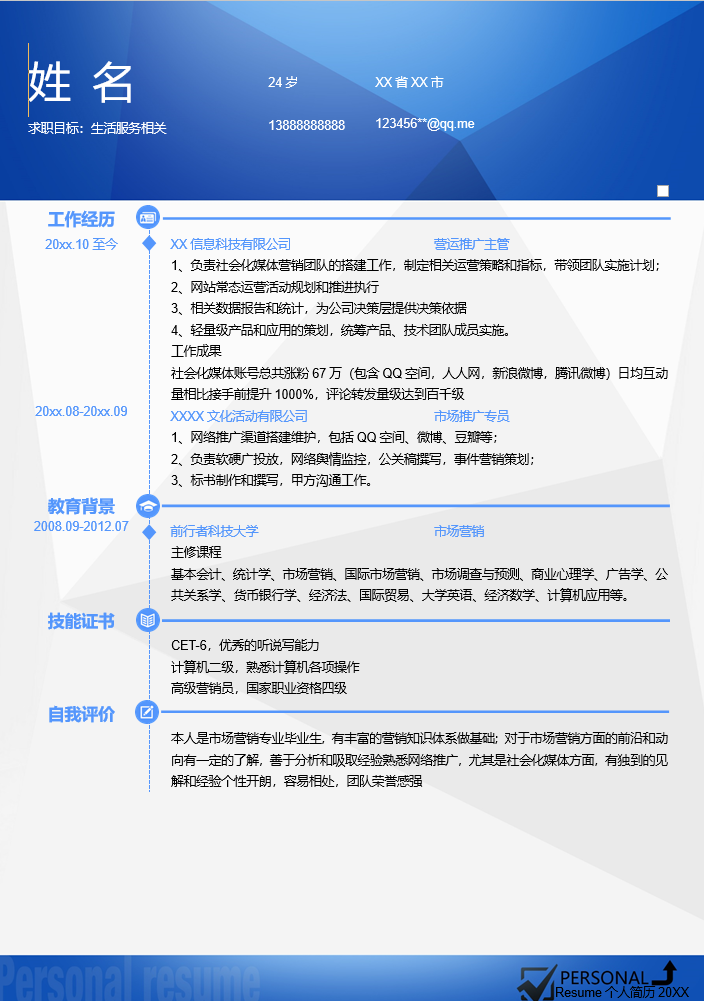 生活服务简历模板-4